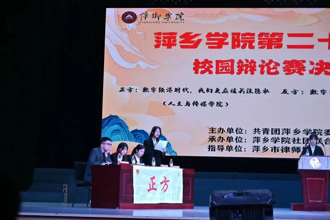 6月15日晚,由校团委主办,校社联承办的第二十七届校园辩论赛总决赛在音乐厅举行。校党委副书记、校长史焕平,校党委副书记邱晓辉以及党政办、团委等部门负责人,商学院、人文与传媒学院负责人和各二级学院师生代表共计600多人一同观看了辩论赛。萍乡市律师协会副会长、北京雍文(萍乡)律师事务所主任李强,萍乡市律师协会副会长、萍乡市鸿天律师事务所副主任李恳,萍乡市教育局师资科陈星、党委教师工作部副部长郑照强、创新创业学院副院长宋杰光、校团委副书记谢银明、党委组织部干部人才科副科长欧阳甜甜担任此次辩论赛评委。本次比赛得到了萍乡市律师协会的精心指导。