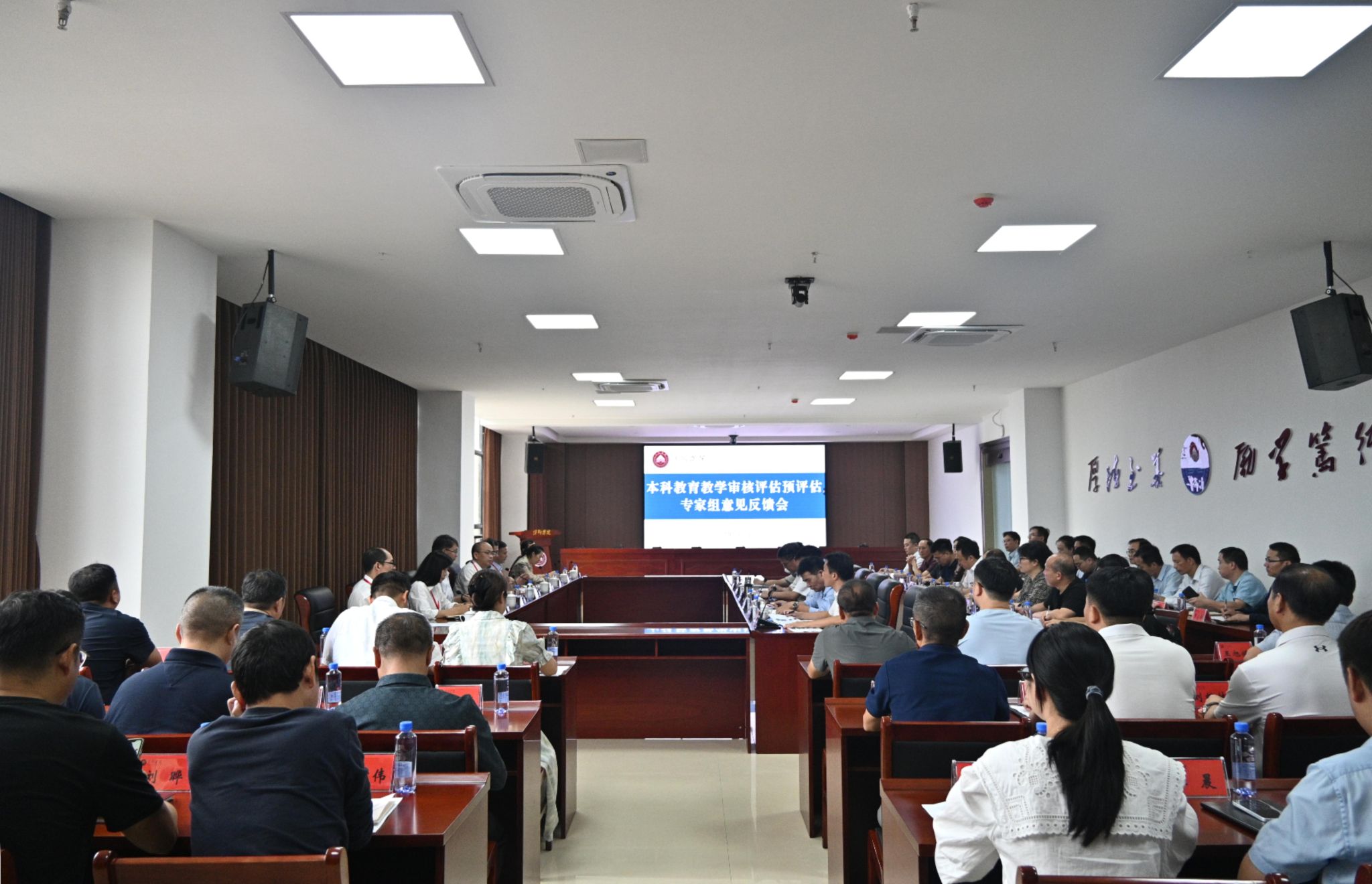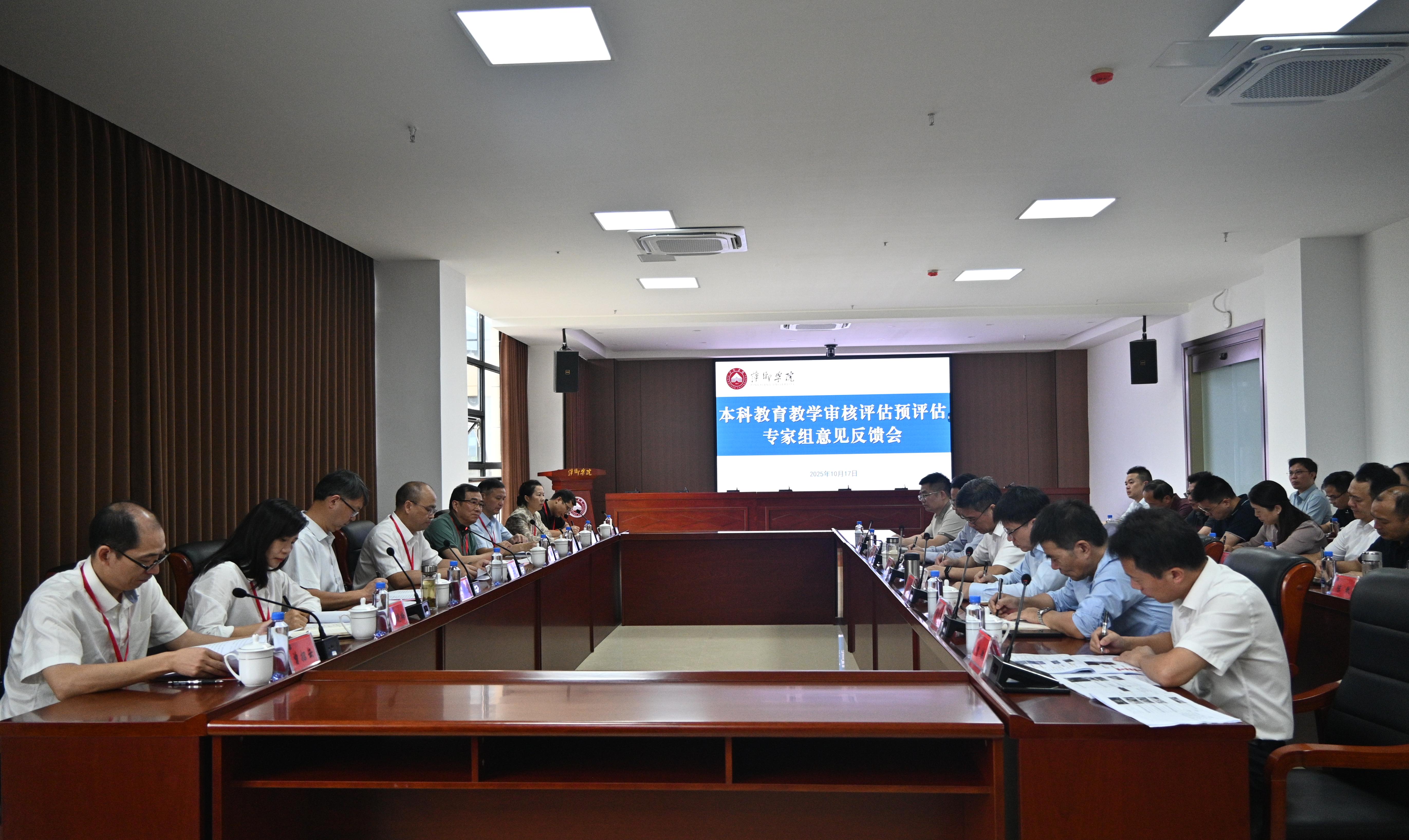 10月17日上午,beat365官网本科教育教学审核预评估专家组意见反馈会在天泉楼三楼会议室召开。预评估专家组成员、全体校领导、各部门负责同志、各二级学院院长及评建办全体成员参加会议。会议由专家组组长、井冈山大学副校长黄族豪主持。