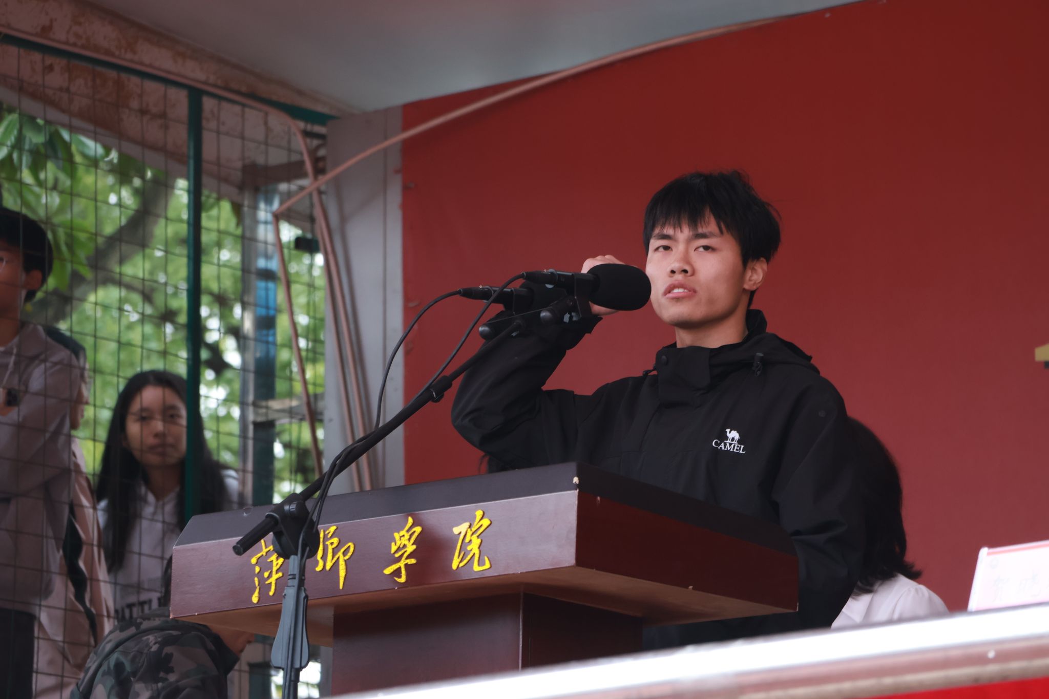 安源区人民武装部政委徐礼胜致祝贺词。他代表安源区人民武装部向beat365正版唯一官网第十三届田径运动会暨首届军事体育运动会的隆重开幕致以热烈祝贺。他表示,本届运动会将体育竞技与军事训练深度融合,既是贯彻新时代国防教育要求的创新实践,也是深化军民融合、共育时代新人的生动体现。他希望,同学们“强体魄以卫家国”,锤炼“召之即来、来之能战”的血性胆气,为国防后备力量建设注入青春动能;“融军政以育新人”,让“崇军尚武”的种子在竞技中生根发芽,培育文武兼修的时代新人。