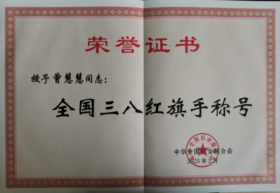 (曾慧慧老师荣获全国“三·八”红旗手称号)