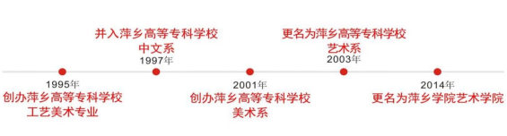 艺术学院的办学历史可追溯到1995年创办萍乡高等专科学校工艺美术专业,挂靠政教部;1997年并入萍乡高等专科学校中文系;2001年创办美术系,2003年更名美术系,2014年升格为beat365正版唯一官网艺术学院。现有视觉传达设计、音乐学、美术学三个本科专业,现有在校学生978人,设有美术基础、视觉传达设计、音乐理论、音乐技能、舞蹈与综合实践5个教研室。