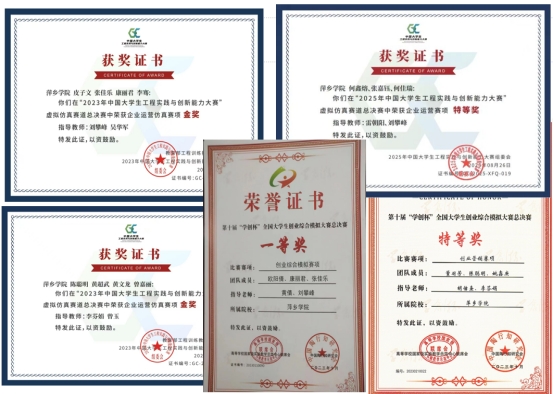 鼓励教师创新课堂教学,将科研成果投入到课堂教学和学生指导工作中,产生了一批科研反哺教学课题和案例。将创新能力培养融入学生学习实践全过程,构建以能力培养为主线、以课程建设为基础、以项目实践为载体的双创教育体系。近年来,获得教育部84类赛事国家级特等奖4项,金奖3项,一等奖9项,二等奖18项,三等奖20项;华中地区一等奖、二等奖各1项;省赛一等奖26项,二等奖22项,三等奖19项。教师参与指导各类职业技能竞赛112人次;学生获得国家级奖励115人次、省级奖励177人次、市级奖励52人次。