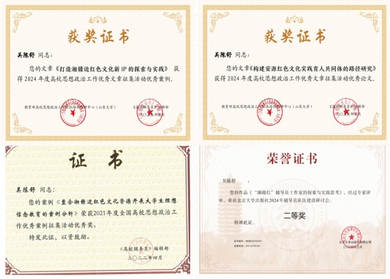 “湘赣红”辅导员工作室以理论和实践研究为主要方向,以加强湘赣边红色文化宣传技能培训为主渠道,传承和弘扬湘赣边红色文化。通过“123456 模式”推动湘赣边红色文化融入大学生思想政治教育。多方合力打造具有湘赣边区域特色的红色文化“金课、金师、金基地、金教材”,推动学院成为弘扬传承湘赣边红色文化的主阵地。学院老师撰写的《“湘赣红”辅导员工作室的探索与实践思考》荣获北京大学出版社2024年辅导员队伍建设研讨会二等奖,《“湘赣红”辅导员工作室打造湘赣边红色文化新IP的探索实践》获评全国高校思想政治工作优秀案例,并被中国网全文刊载。