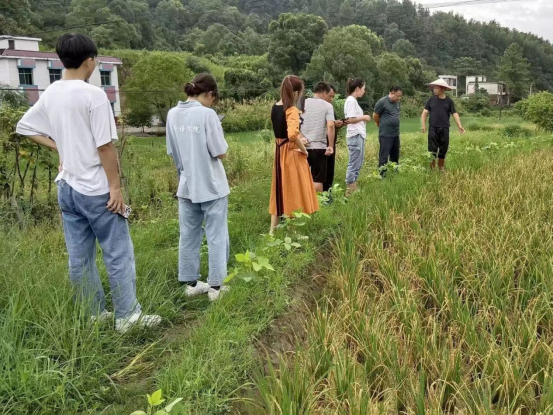 在易主任的带领下,志愿服务团成员深入田间,查看禾苗生长情况,帮助误撒农药造成禾苗干枯的村民联系村镇农业技术人员和保险公司;走进村里,慰问留守老人,了解他们的生活困难,并为他们送上西瓜等消暑礼品;拜访老党员,调研紫溪振兴前后的变化,学习老党员们一心向党、为民服务的精神……
