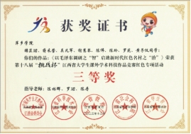 深化“辅导员+学业导师+专任教师”融通育人机制,建立师生一对N联系机制,提升协同育人实效。学院教师带领学生深度参与教学科研工作,指导学生参与大学生创新创业训练计划,获国家级、省级项目立项近10项,指导学生参与社会实践,指导学生参加中国国际大学生创新大赛、“挑战杯”江西省大学生创业计划竞赛、“挑战杯”江西省大学生课外学术科技作品竞赛、江西省大学生职业规划大赛、“田家炳杯”全国师范生教学技能竞赛、“华文杯”全国师范院校师范生教学技能大赛等各级各类赛事获奖20余项。