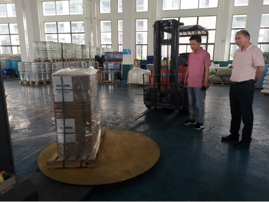 随后,大家一同先后到化工填料车间、分子筛车间、智慧仓储车间、防疫物资车间参观,并就校企合作进行探讨交流。