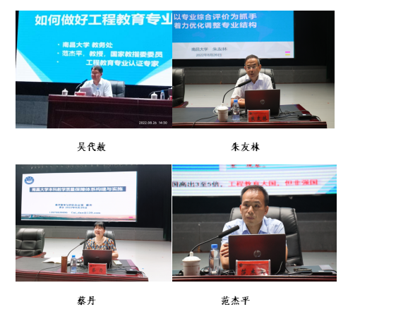 8月26日,beat365官网在音乐厅召开2022年秋季学期全校教学工作研讨会。南昌大学原副校长朱友林、南昌大学教学督导与评估办公室主任蔡丹、南昌大学教务处处长范杰平应邀开展讲座。全体在家校领导出席会议。校副处级以上领导干部、教务处各科室负责人、各教学科研科科长、本科专业负责人、教研室主任等百余名教师参加会议。会议由副校长吴代赦主持。