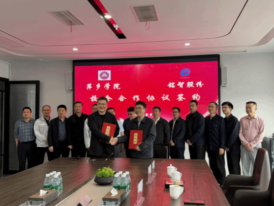 仪式上,江西天铭公司对学校一行的到来表示热烈欢迎。黄志开代表学校表示,此次合作旨在充分利用学校在学术、教学、项目管理和人才培养等方面的优势,同时依托铭智股份(江西天铭)的企业资源,通过“产学研”深度融合,共同促进企业的管理提升与战略发展,同时也助力学校应用型转型,提升学生的实践能力。在与会嘉宾的共同见证下,双方代表正式签署了《校企合作协议书》。根据协议,双方将在“构建人才共培机制”“搭建产学研合作平台”及“共建实习(实训)、就业基地”三大领域展开深度合作。未来,双方将通过互聘专家、协同技术攻关、共建培训基地等方式,实现教育链、人才链与产业链的有机衔接。
