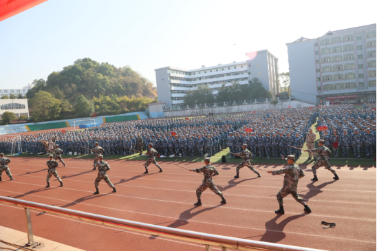开营仪式上,陈永国为军训团授旗并宣布军训开始。军训教官代表、军训战士代表分别作了发言。护校队成员作了军训教学技能展示。