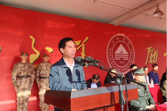刘卫林作军训动员讲话。他代表学校向参训同学表示亲切的问候。他说,大学生军训既是国家的一项长期的国防战略任务,又是大学生履行兵役义务、接受国防教育的基本形式。同时,他就圆满完成此次军训任务提出希望。一是振奋精神,认真参训,以饱满的热情全身心地投入到军训中来,努力完成各项军事训练,展示萍院学子敢打敢拼和奋发向上的精神风貌。二是严于律己,服从指挥,步调一致,作风严谨,借助军训课程的雕琢打磨,养成自律守纪的习惯,为今后在萍院的学习和生活打下坚实的基础。三是团结协作,争创佳绩,在训练中要互帮互助、精诚团结,增强集体荣誉感,发挥团队合作精神,为争取团队最佳成绩而努力拼搏。四是科学施训,安全第一,既要按纲施训,又要根据具体对象的特点区分训练层次,把握训练强度,科学施训,确保安全。