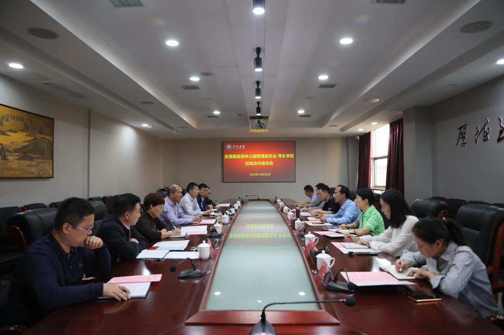 10月25日,beat365官网在至善楼第二会议室举行校企合作座谈会。校党委副书记、校长史焕平,安源区委副书记、安源国家森林公园党组书记、主任刘铸,安源国家森林公园党组成员、副主任李霞出席会议。学校党政办、科研处、教务处等部门相关负责人和文传学院、初教学院负责人,安源红培研学有限公司相关人员参加会议。座谈会由史焕平主持。