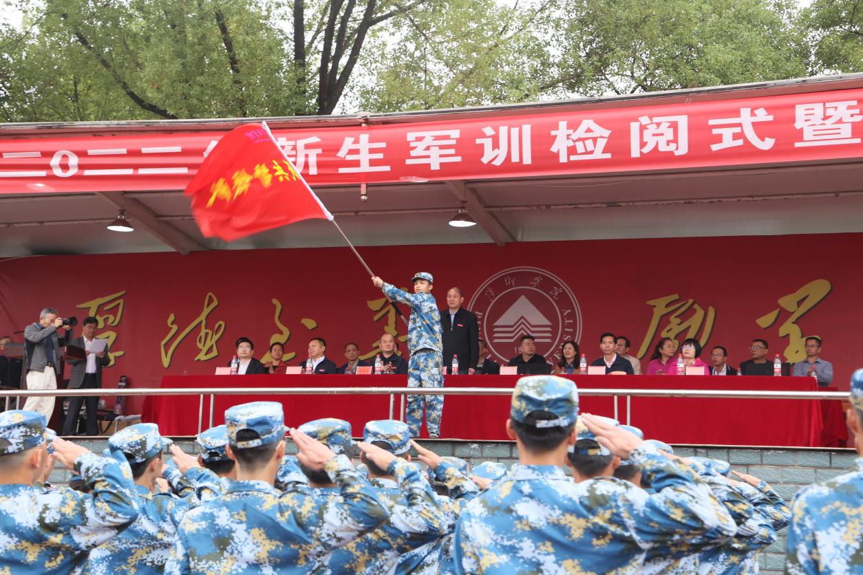 校党委副书记、校长史焕平为新一届民兵护卫队授旗。