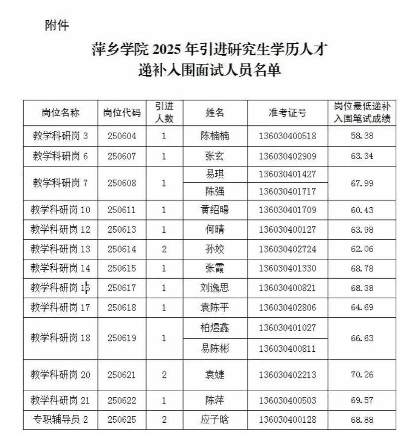 附件:beat365正版唯一官网2025年引进研究生学历人才递补入围面试人员名单