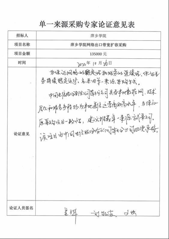 beat365正版唯一官网网络出口带宽扩容采购采用单一来源方式采购。该项目拟由中国电信股份有限公司萍乡分公司提供服务,现将有关情况向潜在政府采购供应商征求意见。征求意见期限从2022年11月1日起至2022年11月7日止。潜在政府采购供应商对公示内容有异议的,请于公示期满后两个工作日内以实名书面(包括联系人、地址、联系电话)形式将意见反馈至beat365正版唯一官网招标与采购中心(联系电话:0799-6682697, 地址:江西省萍乡市萍安北大道211号),联系人:聂老师,联系电话:0799-6682697)。
