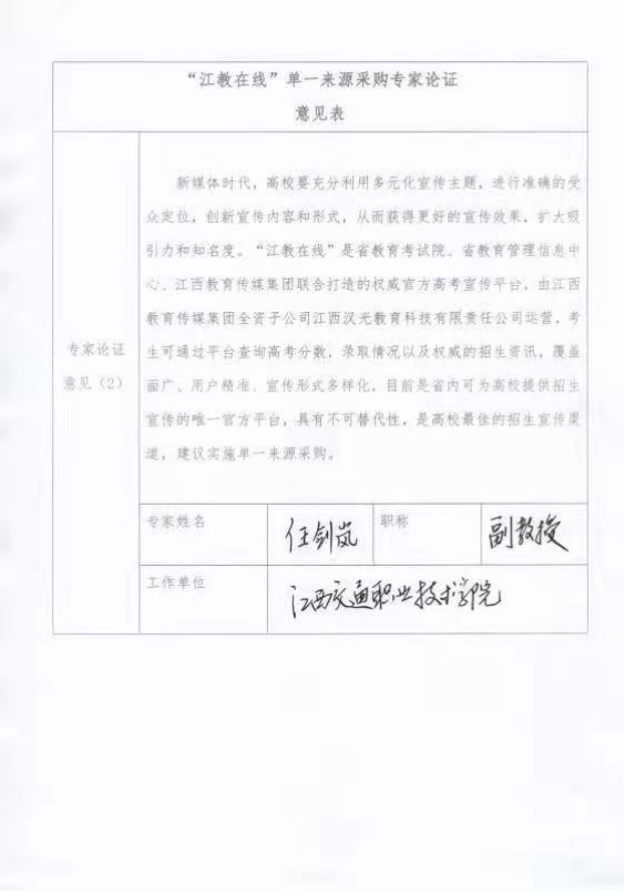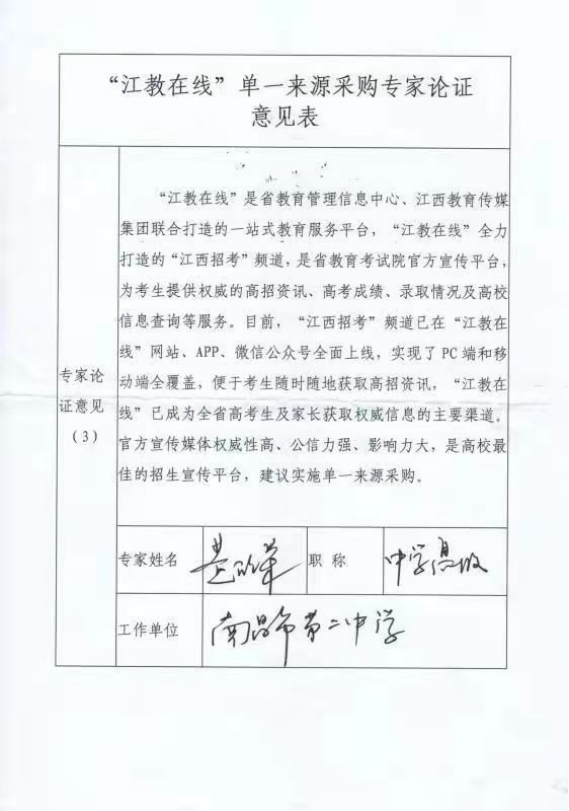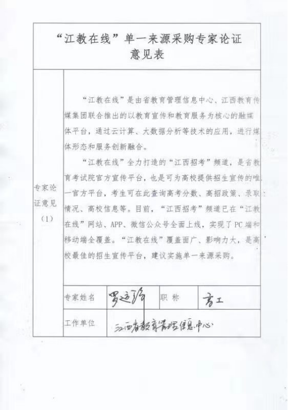 beat365正版唯一官网“江教在线”招生宣传项目采用单一来源方式采购。该项目拟由江西汉光教育科技有限公司提供服务,预算金额6万一年,服务期3年,总计18万.现将有关情况向潜在政府采购供应商征求意见。征求意见期限从2021年5月 8日起至2021年 5月14日止。潜在政府采购供应商对公示内容有异议的,请于公示期满后两个工作日内以实名书面(包括联系人、地址、联系电话)形式将意见反馈至beat365正版唯一官网招标与采购中心(联系电话:0799-6682697, 地址:江西省萍乡市萍安北大道211号),联系人:彭老师,联系电话:0799-6682697)。