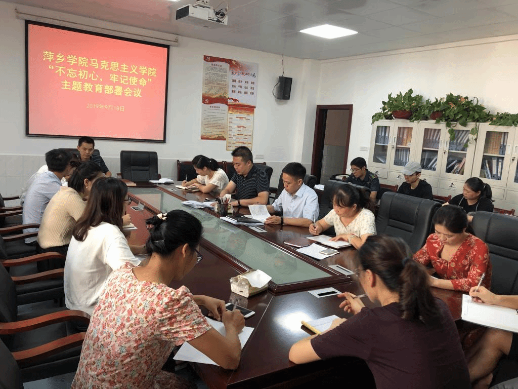 9月18日,马克思主义学院在院会议室召开“不忘初心、牢记使命”主题教育部署会议。党总支书记叶继林、院长朱红英、党总支副书记江惺俊及全体教职工党员参加会议。