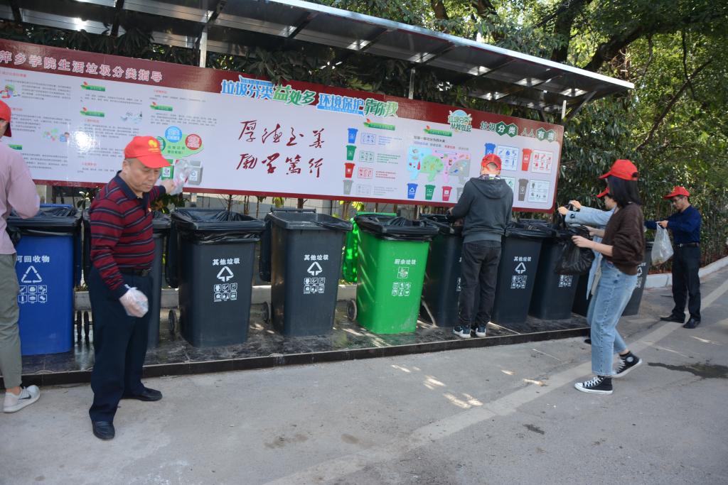 外国语学院在党总支书记黄柏萍的带领下,教工党支部、学生党支部党员们分工合作,密切配合,对学校后街、若水广场等进行了彻底清理。党员们个个热情高涨,一边清扫烟头、果皮等垃圾,一边向周边店铺宣传垃圾分类相关知识,倡导垃圾分类从自我做起。