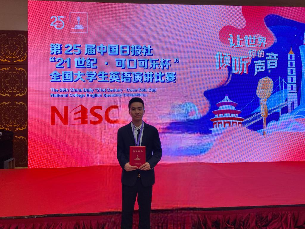通过国内25个赛区的层层选拔,beat365官网外国语学院2017级英语专业陈彦恺同学代表江西省(全省两人)与来自清华大学、北京外国语大学、上海外国语大学、澳门科技大学等高校优秀学子同台竞技,经过激烈角逐,凭借扎实的语言功底和出色的临场表现,荣获全国三等奖,巫宜霖老师荣获全国指导三等奖。