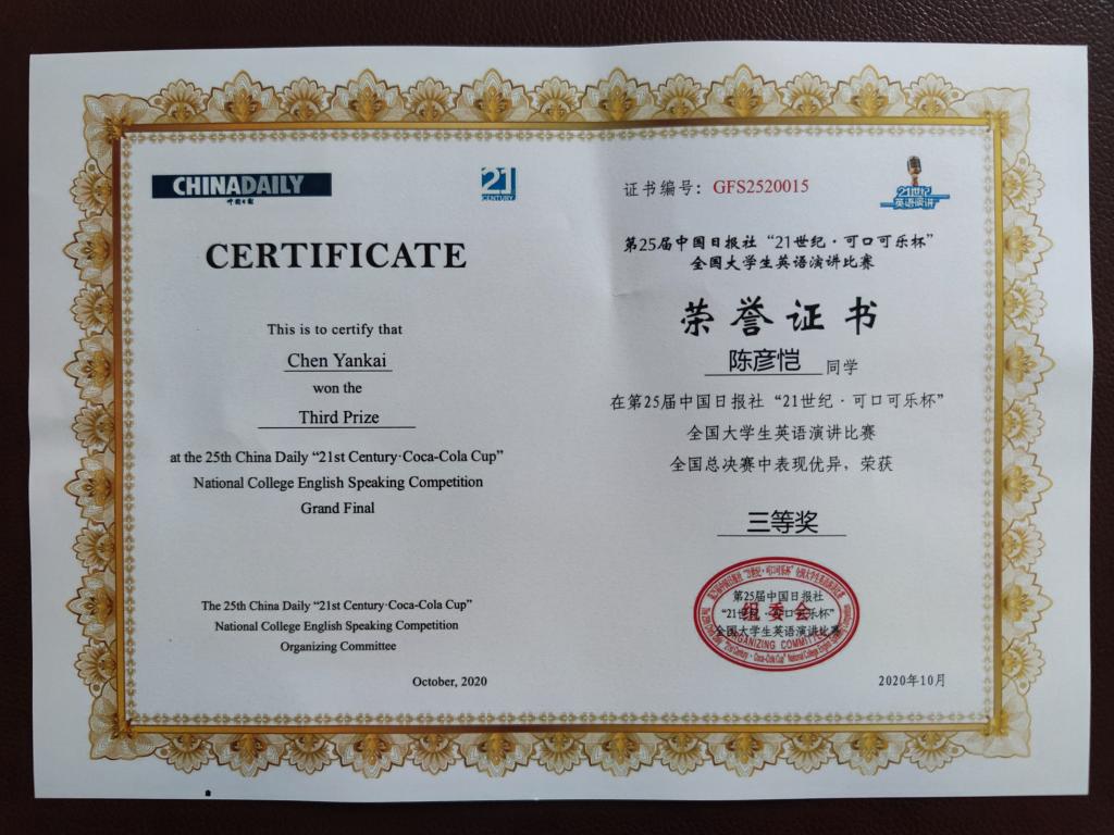 2020年10月7日,第25届中国日报社“21世纪·可口可乐杯”全国大学生英语演讲比赛全国总决赛在广州白云国际会议中心完美落幕。