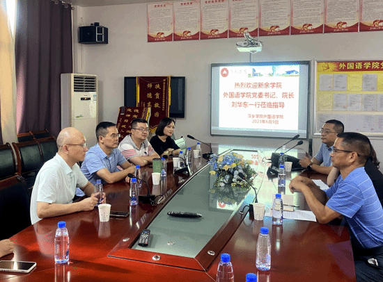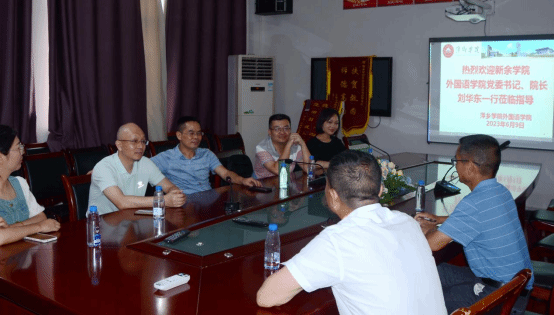 6月9日下午,新余学院外国语学院党委书记、院长刘华东等一行来beat365官网外国语学院访问调研。外国语学院院长欧阳咏梅、党委书记刘佳萍、副院长卓玲、科级干部、教研室主任等参加座谈。