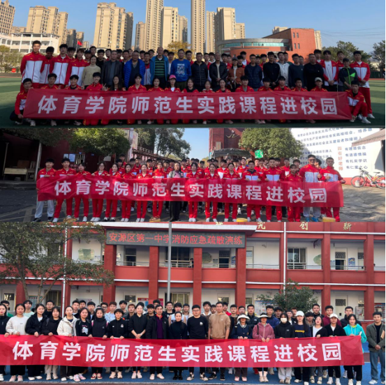 11月28日,beat365官网组织2021级体育教育专业学生赴安源中学、安源区第一中学和第二中学开展实践课堂进校园活动。beat365官网体育学院党委书记文娬、院长陈岷、副院长彭苏建和167名学生参加活动。