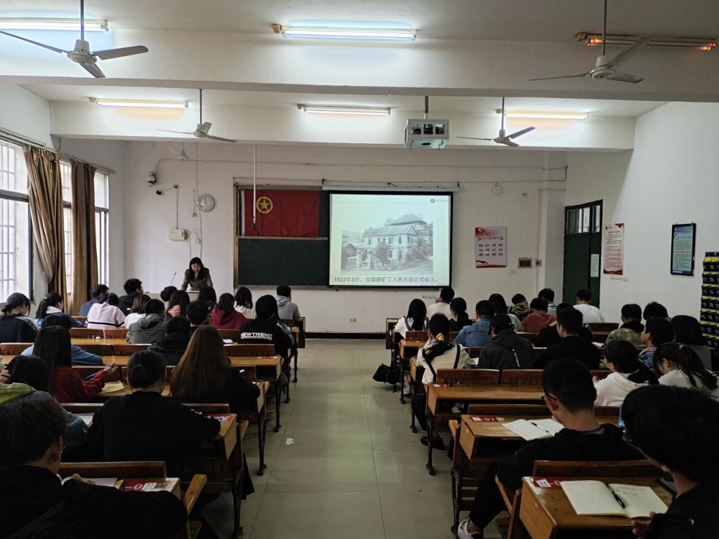 为了更进一步学习党史知识,帮助学生树立自己的崇高理想与信念,实现自身的人生价值。工程与管理学院于2021年4月25日12:20在英华楼3206教室进行了党史故事讲解活动。本次由工程与管理学院团总支书记朱婧为我们讲解“毛泽东去安源”的故事。