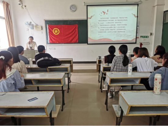 2021年4月22日,外国语学院辅导员钟倩老师为19商本1班全体同学讲述八子参军的党史故事,激励同学们坚定理性信念,自觉弘扬和继承革命先烈的优良传统,传承红色基因,牢记历史使命,坚守初心,砥砺前行。