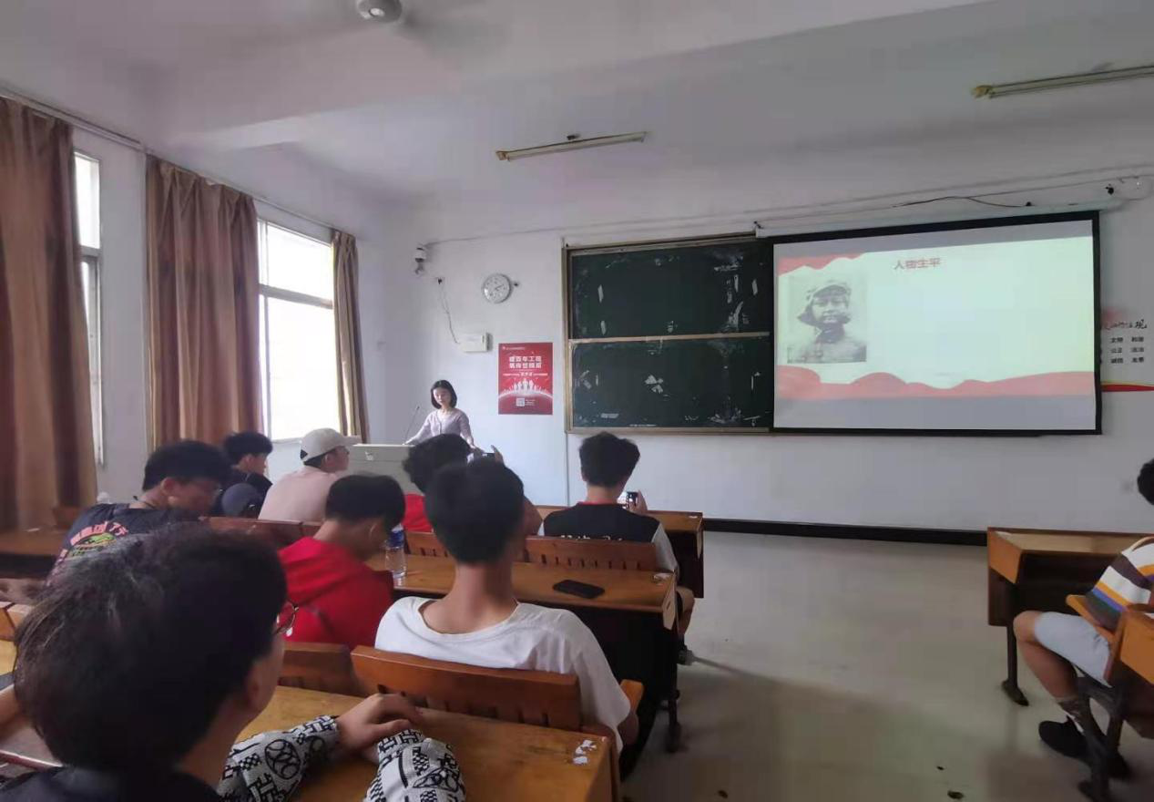 林千万子老师给20级4个班级宣讲,宣讲主题:“党史故事—伍若兰”,她首先带领大家学习了习近平总书记重要讲话精神,解读了中国共产党历史,让学生们知史爱党、知史爱国,坚定理想信念,践行初心使命;做到学史明理、学史增信、学史崇德、学史力行的行动自觉。其次,通过资料和史实,讲述了伍若兰红色人物的红色事迹。她谈到伍若兰精神:“她是井冈山上永不凋谢的兰花,她是视死如归用血肉守护家国的苏区女战士”;“无论是宁死不屈的共产党员,还是抗击台风的烈士,支撑她们的都是中国共产党背后的信念”。林老师给同学们寄语:身在和平年代的同学们更应该学习这样的精神,争做社会主义合格建设者和可靠接班人。