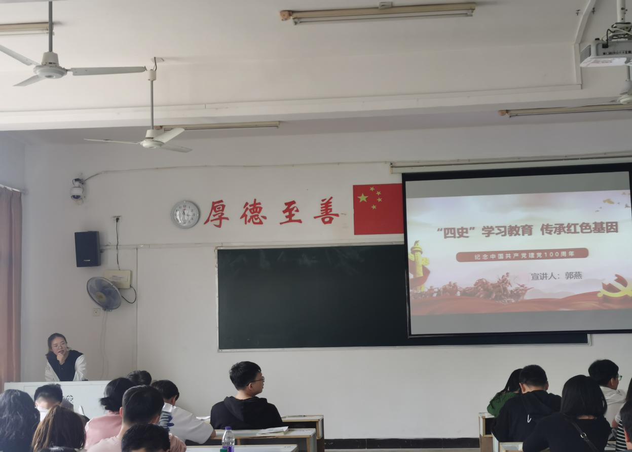胡丹凡老师给19级体育教育的4个班级宣讲,宣讲主题:“以史鉴今、资政育人”。宣讲内容主要包括以下三个方面:1、以史为鉴,更好前行,提醒学生要注重党史学习,中共党史是具有资政育人功能的,我们作为新时代的大学生,更加要学习和研究党史,重视历史,研究历史,借鉴历史,以史鉴今,更好前行。2、井冈山精神,主要向学生介绍了井冈山精神的内涵,发扬和传承井冈山精神的重要意义。3、红色故事-何长工,带领学生回顾了革命先烈何长工的故事,何长工以其超人的智慧与勇敢,出色完成了毛泽东同志交给的一项又一项艰巨而又复杂的任务,希望同学们应该继承发扬革命先烈的精神。