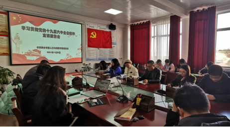 为深入学习贯彻党的十九届六中全会精神,12月2日,人文与传媒学院在1404召开党的十九届六中全会精神宣讲会,会上邀请了马克思主义学院教师甘希作辅导讲课。根据学校安排,马克思主义学院陈尧嘉、段杉列席会议。人文与传媒学院党委书记吴文彬主持宣讲会,学院党委理论学习中心组全体成员、师生党员参加宣讲会。