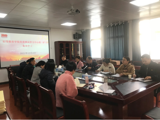 12月3日,初等教育学院在英华楼3247召开党委理论学习中心组(扩大)集体学习会专题学习党的十九届六中全会精神。初等教育学院党委书记刘霞为参会人员作专题辅导。初等教育学院党委理论学习中心组成员,科级以上干部,全体辅导员参加了此次学习会。工程与管理学院团总支书记、学工科长肖可成受邀列席旁听指导,学习会由刘霞主持。