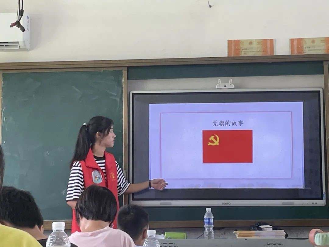 孩子们认真聆听中国共产党的光荣历史,辨认着党旗、国旗。结合文字、视频积极互动,培养爱国主义情怀,始于当下,从小做起。
