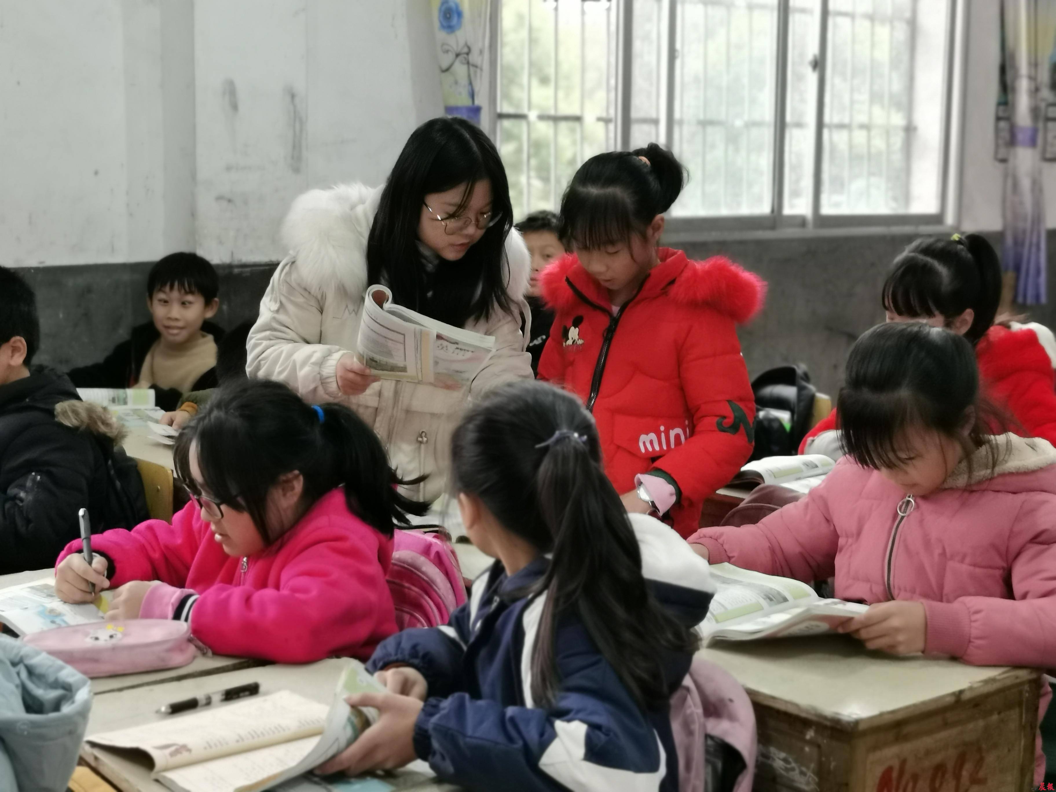 江西晨报网讯(记者周双萍 户外 通讯员张筱萱)站在讲台前的她,白里透红的脸蛋上架着一副度数不高的眼镜,一笑眼睛就成了一条细长的线,萌萌的,一头披肩发乌黑发亮,一开口声音里透着几分童音。当她步下讲台,走入学生中间时,看上去比那些五年级小学生也高不了多少。望着她神态自若地提问、解答,如同一位“身经百战”,有着丰富教学经验的老教师的模样,萍乡市湘东区老关镇三角池小学校长杨志寨悄悄告诉记者,小钟老师去年刚参加工作,今年才20岁呢。