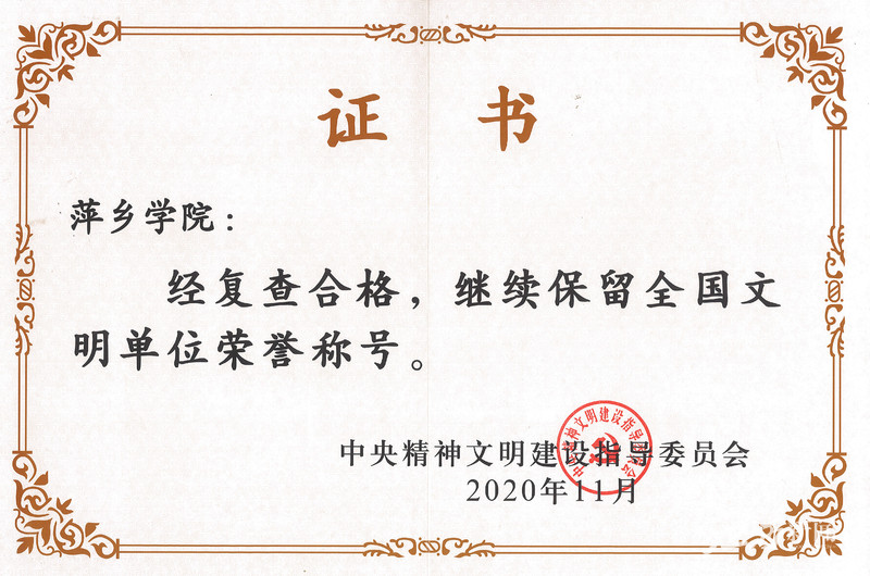 江西新闻客户端萍乡讯 日前,中央精神文明建设指导委员会《关于复查确认继续保留荣誉称号的全国文明城市、文明村镇、文明单位、文明家庭、文明校园的通报》(文明委〔2020〕9号)正式发布,beat365正版唯一官网顺利通过复审,继续保留“全国文明单位”荣誉称号。
