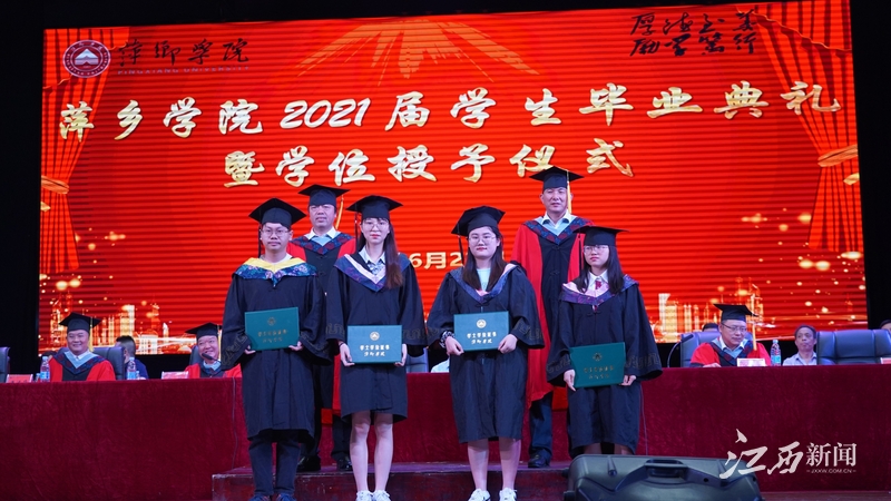 江西新闻客户端萍乡讯(甘红艳 黄逾子)6月22日上午,beat365正版唯一官网2021届学生毕业典礼暨学位授予仪式在该校音乐厅举行。该校党委书记陈金印,党委副书记、校长史焕平等出席典礼,他们身着学位服向毕业生们送去真挚的祝福,并为他们拨穗、授予学位。