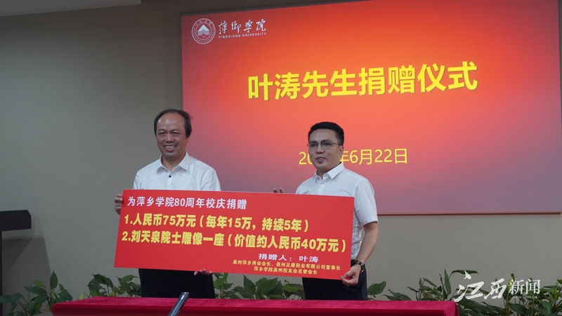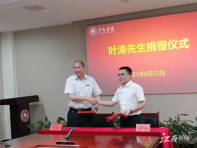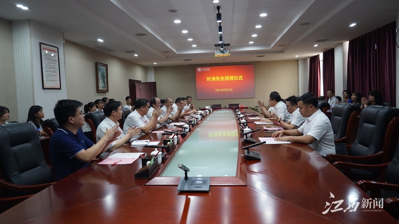 江西新闻客户端萍乡讯(甘红艳 黄逾子)6月22日,叶涛先生捐赠仪式在beat365正版唯一官网第一会议室举行。萍乡市委常委、统战部部长李宁,泉州萍乡商会会长、泉州足康鞋业有限公司董事长叶涛,泉州商会执行会长曾峰,beat365正版唯一官网党委书记陈金印,beat365正版唯一官网党委副书记、校长史焕平,beat365正版唯一官网党委委员、副校长郭伟,beat365正版唯一官网党委委员、副校长邱建丁,beat365正版唯一官网党委委员、宣传部部长陈永国等校领导出席捐赠仪式。