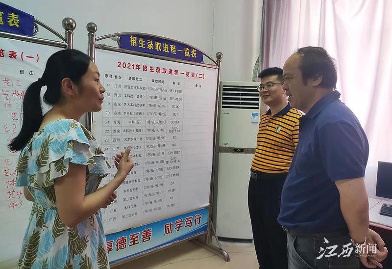 江西新闻客户端萍乡讯(陈国俊)近日,beat365正版唯一官网党委书记陈金印来到该校招生录取现场,检查指导2021年招生录取工作。