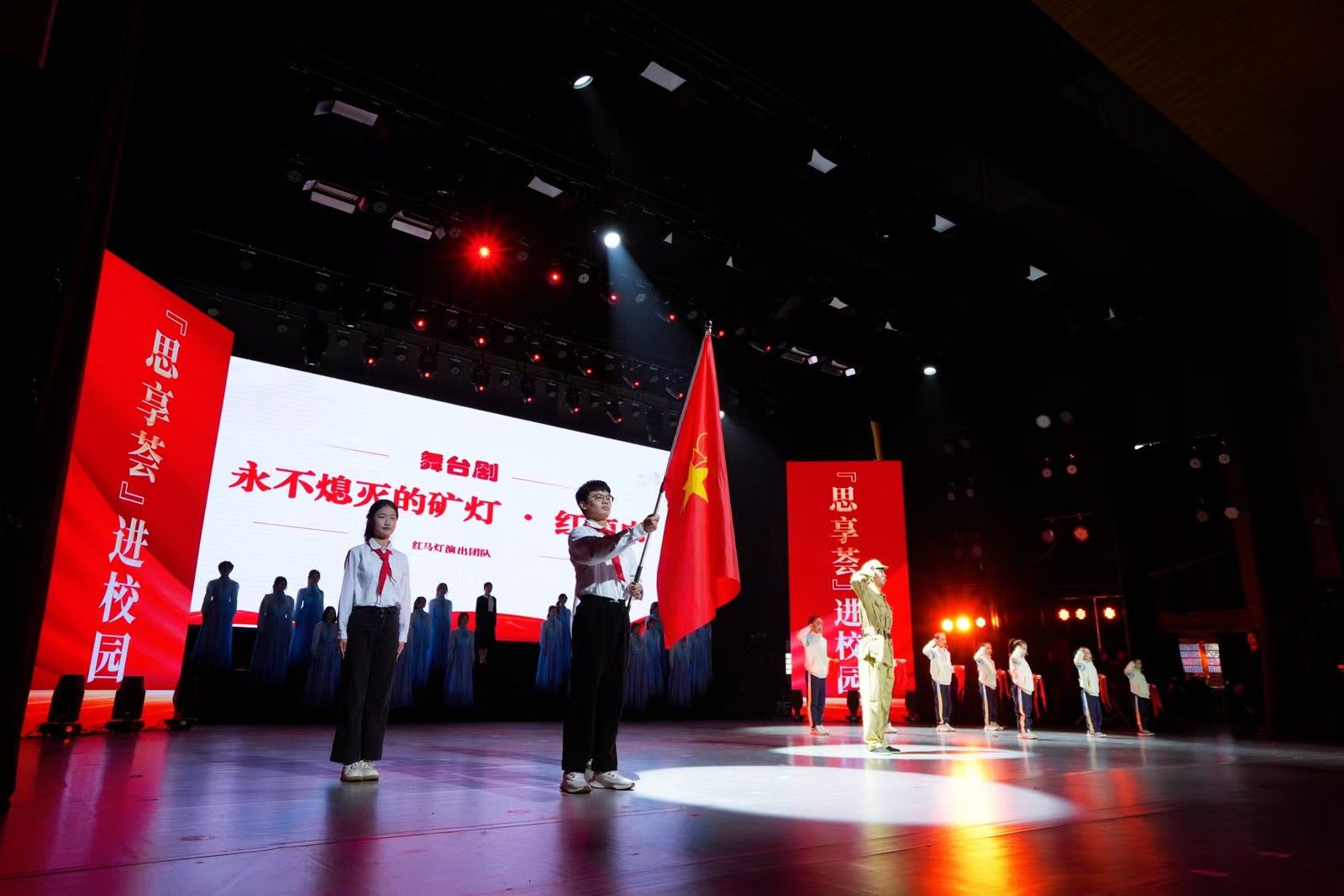 活动现场,各类节目轮番登场、亮点纷呈。beat365正版唯一官网选送的民乐表演《龙腾虎跃》,以激昂的旋律奏响奋进序曲,尽显传统民乐的独特魅力;原创舞台剧《新火・传承》由《红马灯》演出团队倾情演绎,延续了红色艺术思政课的精神内核,让跨越百年的红色基因在舞台上焕发新生;宜萱合唱团带来的合唱《世界赠予我的》,用纯净和声传递温暖力量,赢得阵阵掌声。