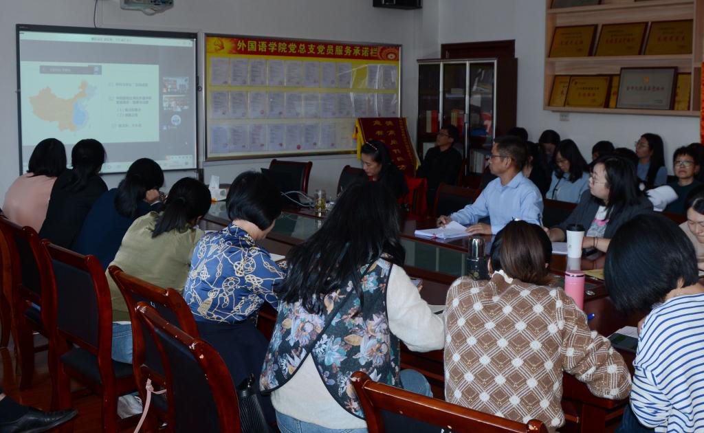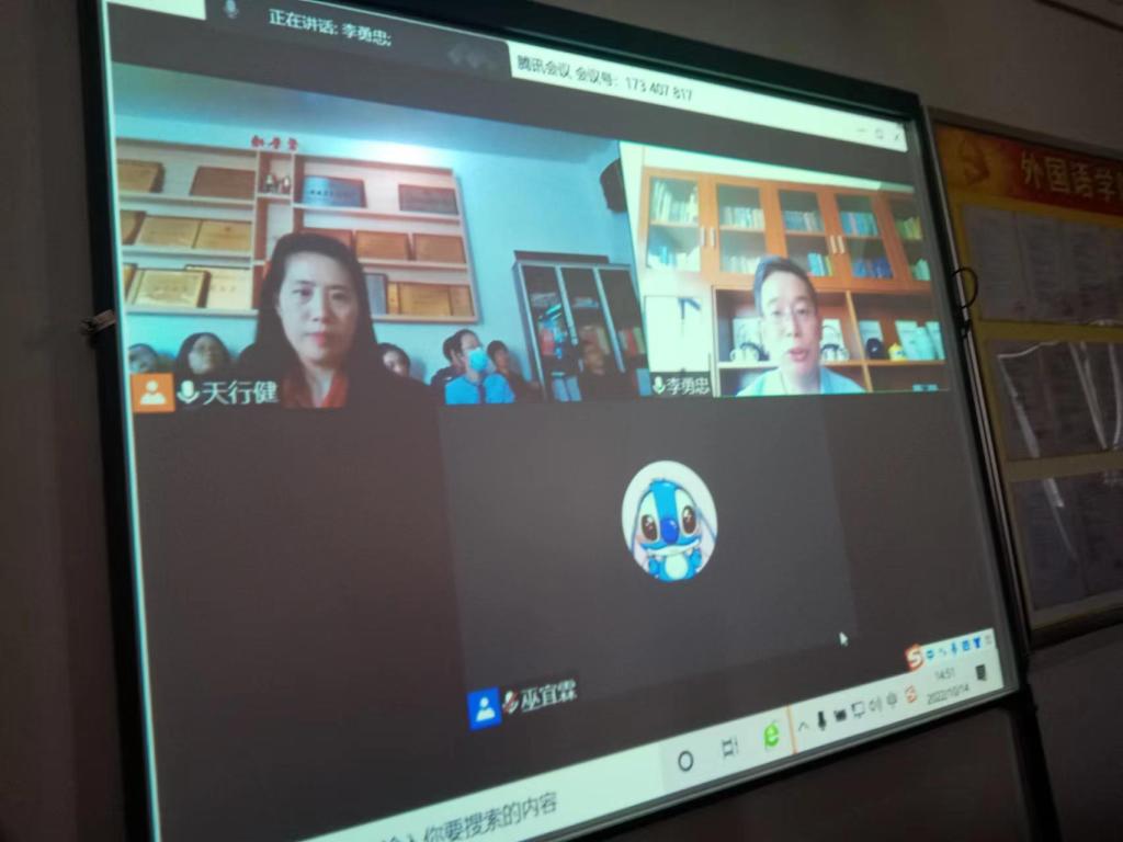2022年10月14日下午,应beat365正版唯一官网外国语学院邀请,江西师范大学外国语学院院长李勇忠教授做了题为“师范类高校外语学科建设、专业发展与专业认证”的学术讲座。本次讲座采取线上腾讯会议方式进行,全校外语类教师在英华楼3319会议室收听讲座。讲座由外国语学院院长欧阳咏梅教授主持。