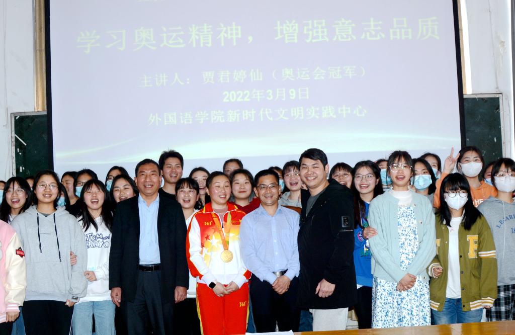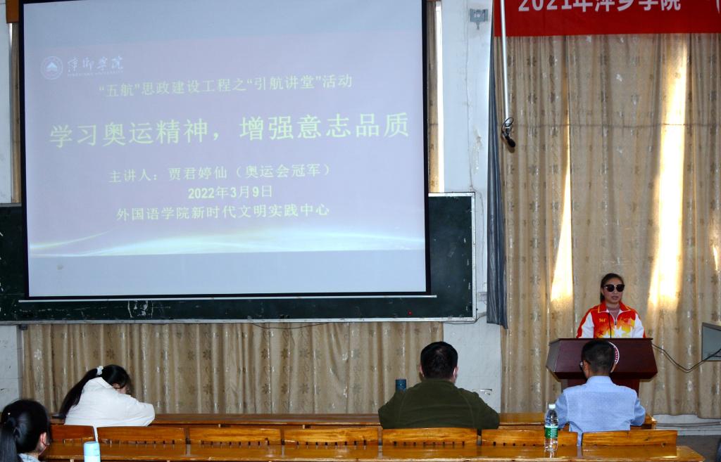 为开展好外国语学院“五航”思政建设工程之“引航工程”活动,积极推进学院新时代文明实践中心建设,进一步落实立德树人根本任务,激发学生的爱国热情、学习奥运精神、增强学生的意志品质,3月9日,正值北京正在举办冬残奥会之际,外国语学院邀请了残奥会冠军贾君婷仙、国际残奥会田径大奖赛冠军李小文来校讲座。讲座主题为:“学习奥运精神,增强意志品质”,来自全校各个学院的三百多名学生聆听了讲座。讲座由外国语学院党委副书记刘佳萍主持。