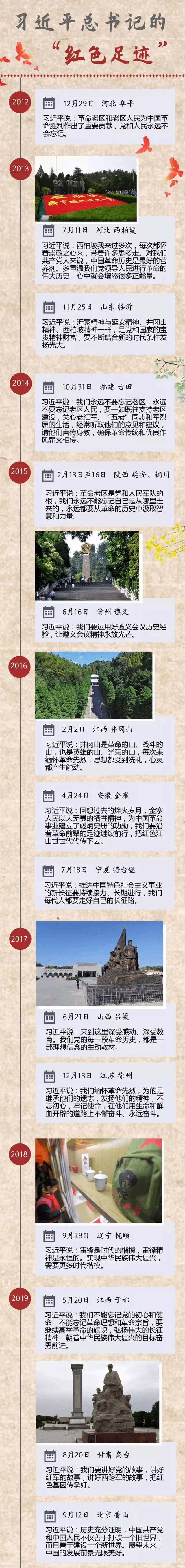 从太行深处到滹沱河畔,从沂蒙山区到遵义古城,从宝塔山上到六盘山中……党的十八大以来,习近平总书记的“红色足迹”遍及各个革命老区,为全党坚定理想信念、传承红色基因树立了榜样。