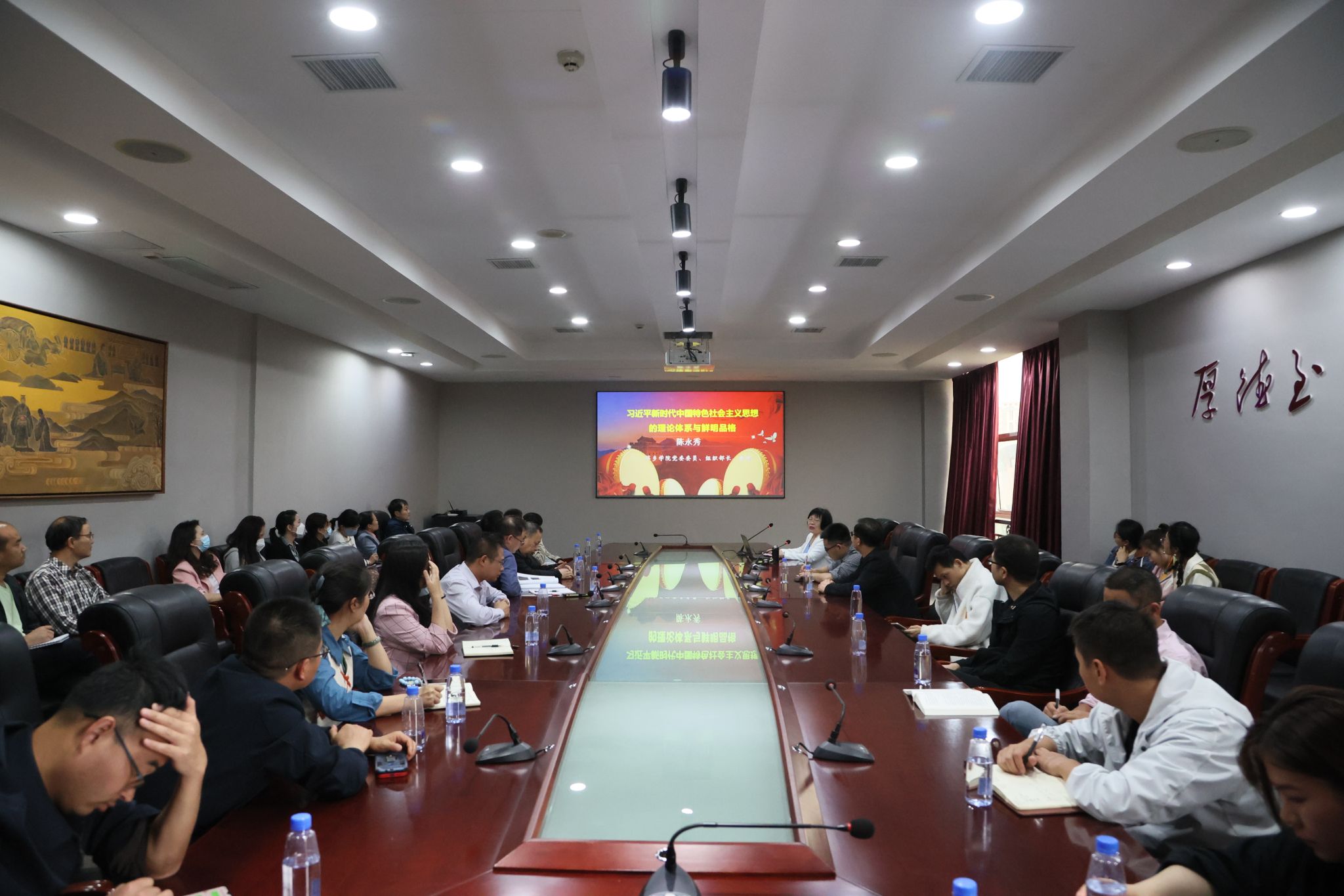5月23日,beat365官网在至善楼第二会议室举办学习贯彻党的二十大精神暨高层次人才工作主题教育宣讲会。宣讲会由校党委委员、组织部部长陈永秀主讲。全校博士教师参加讲座。