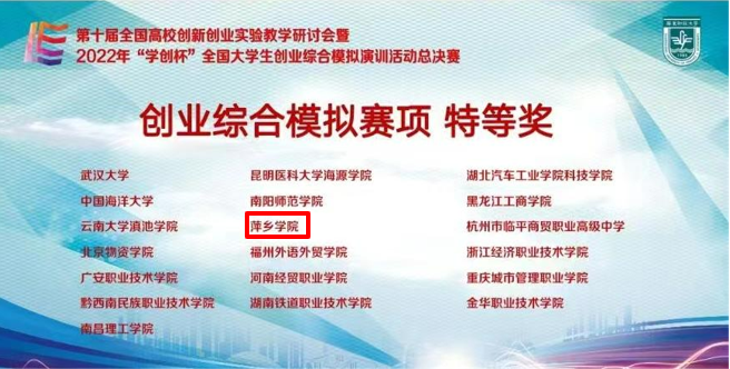 2022年获得“学创杯”全国大学生创业综合模拟赛全国特等奖