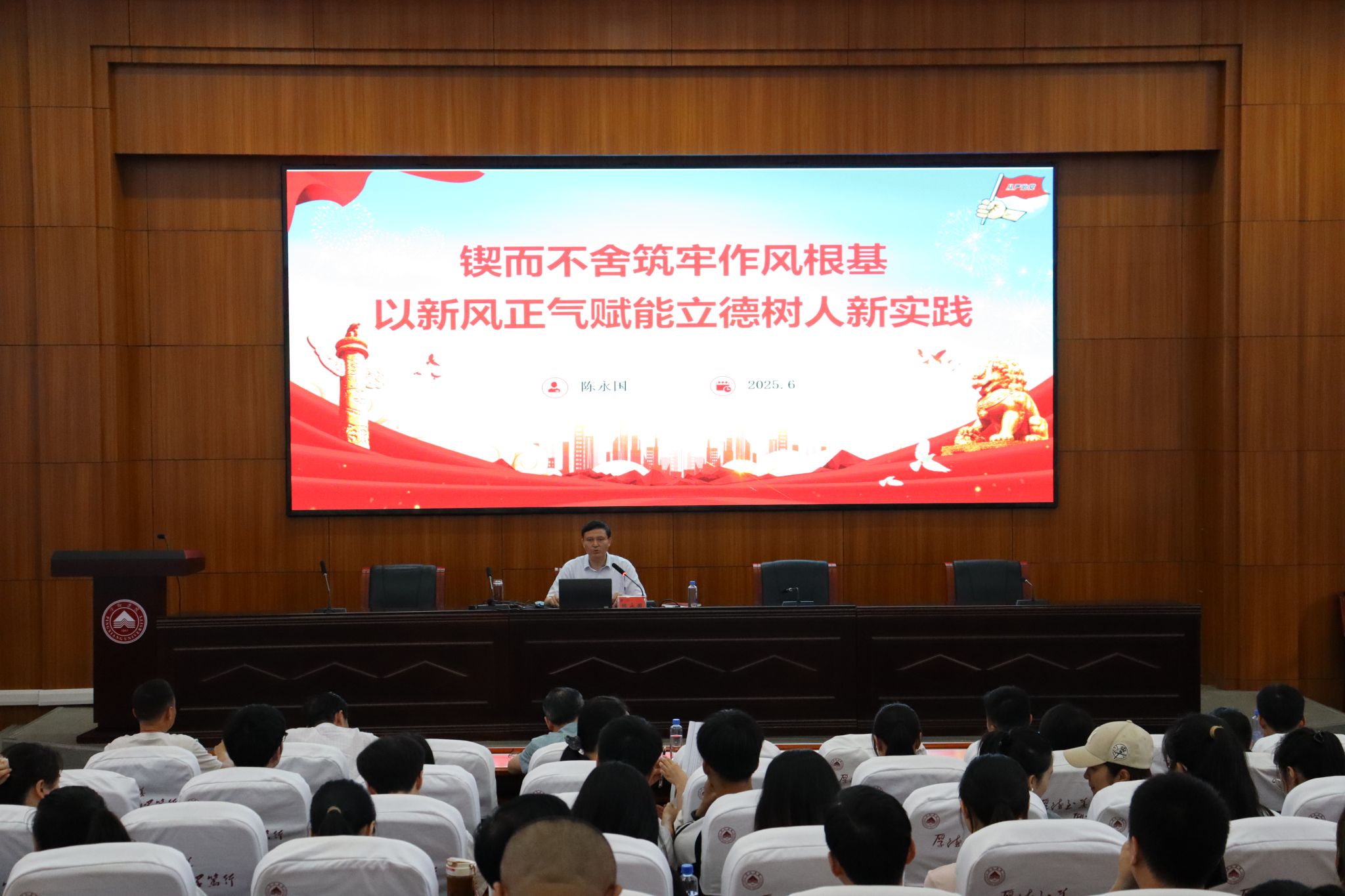 为纵深推进学校深入贯彻中央八项规定精神学习教育,切实增强教职工党员纪律规矩意识,推动作风建设提质增效。6月6日,党委委员、副校长陈永国以 “锲而不舍筑牢作风根基,以新风正气赋能立德树人新实践”为题,为机关有关部门和联系二级学院的师生党员讲授专题党课。