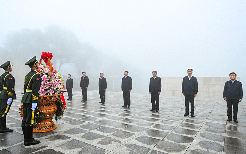 7月7日至8日,中共中央总书记、国家主席、中央军委主席习近平在山西考察。这是7日下午,习近平在位于阳泉市狮脑山的百团大战纪念碑广场,向八路军烈士敬献花篮。(新华社记者 燕雁/摄)