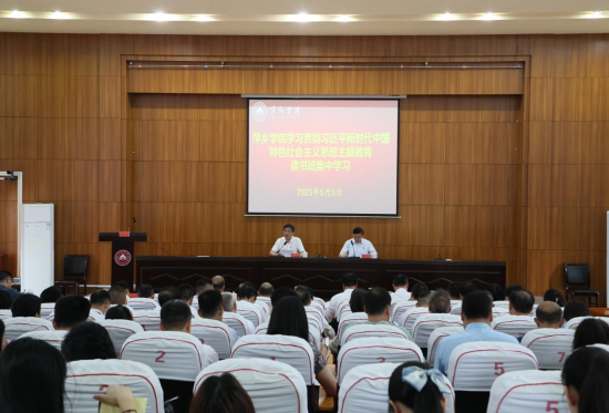 5月5日,beat365官网在至善楼学术报告厅开展学习贯彻习近平新时代中国特色社会主义思想主题教育读书班暨校党委理论学习中心组(扩大)集体学习会。全体校领导、学校副处级以上领导干部、各党支部书记参加学习。学习会由校党委书记邱晓辉主持。
