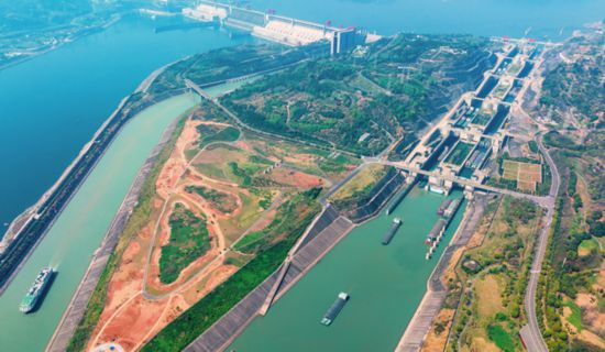 2023年一季度,三峡枢纽航运通过量3989.36万吨,同比增长22.08%,创投运以来一季度航运通过量最高纪录。图为船舶有序通过三峡双线五级船闸和升船机(2023年4月1日摄) 郑家裕摄 / 本刊